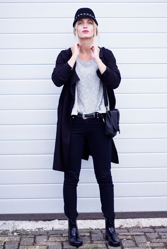 Aah an almost black outfit! Feels so good to wear my black jeans again. Have to admit I really like summer, but shorts are not my favorite to wear. Black jeans, black long coat I am loving it. It feels powerful and strong. By the way, what do you think of the boots? Yesterday I also bought a chain, a black one haha. Posted a sneak peek on my Instagram profile and I am curious what you think.